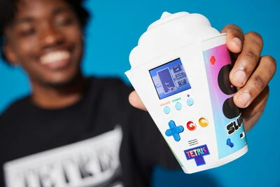 Beginning today, customers across the U.S. who purchase participating products via 7Rewards®, Speedy Rewards® or 7NOW® Delivery will have a chance to win one of 20,000 limited edition Tetris handheld gaming devices shaped like 7-Eleven’s iconic frozen beverage, the Slurpee drink.* The bespoke handheld devices, designed and manufactured by My Arcade®, celebrate the legacy of Tetris in the form of the world’s most recognizable frozen beverage.
