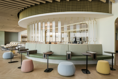 Standout features include a stunningly designed Welcome Bar offering a range of beverages, an immersive Wine Bar featuring master wine maker Gerard Bertrand and their wines from the South of France, and a Tea Salon offering an assortment from around the world. For business travellers who prefer a quieter space, there are private work cabins and secluded nooks throughout the lounge.