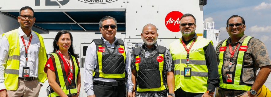 AirAsiaFrom (L-R) Kesavan Sivanandam, Chief Airport and Customer Experience Officer of AirAsia; Yap Mun Ching, Chief Sustainability Officer of Capital A; YB Loke Siew Fook, Minister of Transport Malaysia; Dato’ Captain Fareh Mazputra, Managing Director of AirAsia Malaysia; Mohit Khatri, Head of Ground Operations Project of AirAsia and Fazrul Khan, Duty Manager, Ground Operations Projects of AirAsia.