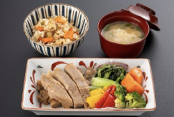 This menu is an adaptation of the “Kachimeshi®” provided to the confirmed members of the Japanese Judo team for Paris 2024, including athletes Hifumi Abe (Men’s 66kg), Uta Abe (Women’s 52kg), and Miku Takaichi (Women’s 63kg), as a post-weight-cut recovery meal by Ajinomoto Co. The ginger pork, made with tender pork and seasoned with a mild yet flavorful taste, is rich in vitamin B1 and is a nutritious dish suitable for replenishing nutrients regardless of appetite. On flights departing from Haneda to Paris, a “dashi soup” will also be served, using Ajinomoto Co.’s “HONDASHI®.”