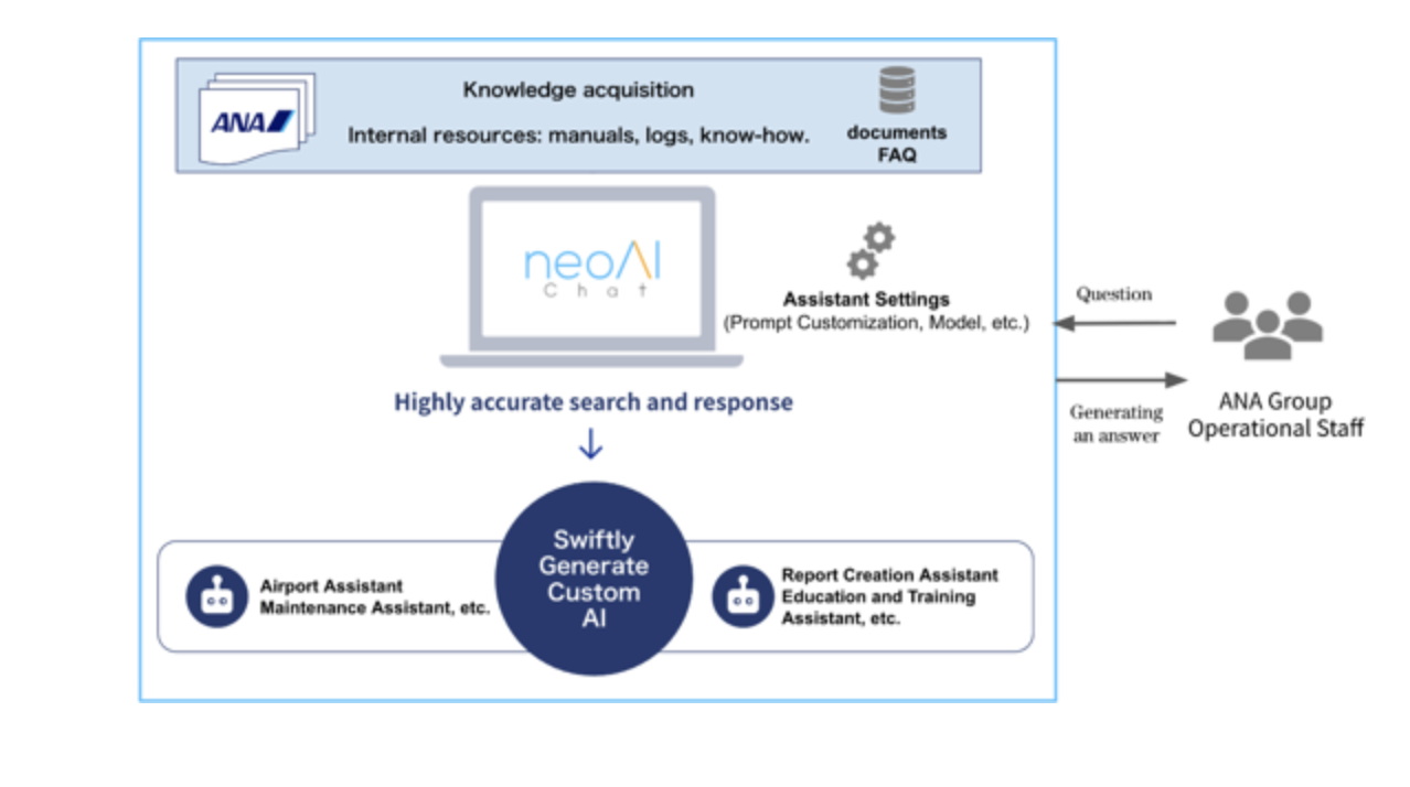 All Nippon Airways (ANA) has rolled out “neoAI Chat,” a generative AI platform, across its operational divisions to enhance safety, efficiency, and customer service. Developed by neoAI Corporation, the platform enables employees to quickly retrieve critical information from complex internal documents, reducing reliance on manual searches and individual expertise.