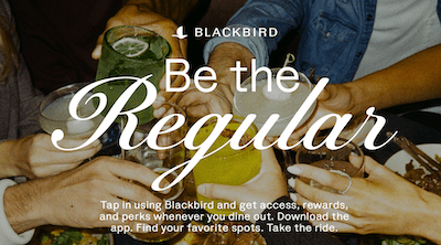 Blackbird is a loyalty and membership company, focused on leveraging the power of direct connectivity between restaurants and their guests. Blackbird offers a fully customizable loyalty programming platform for restaurants and a consumer app designed to make every guest feel like a bonafide VIP no matter where they dine.