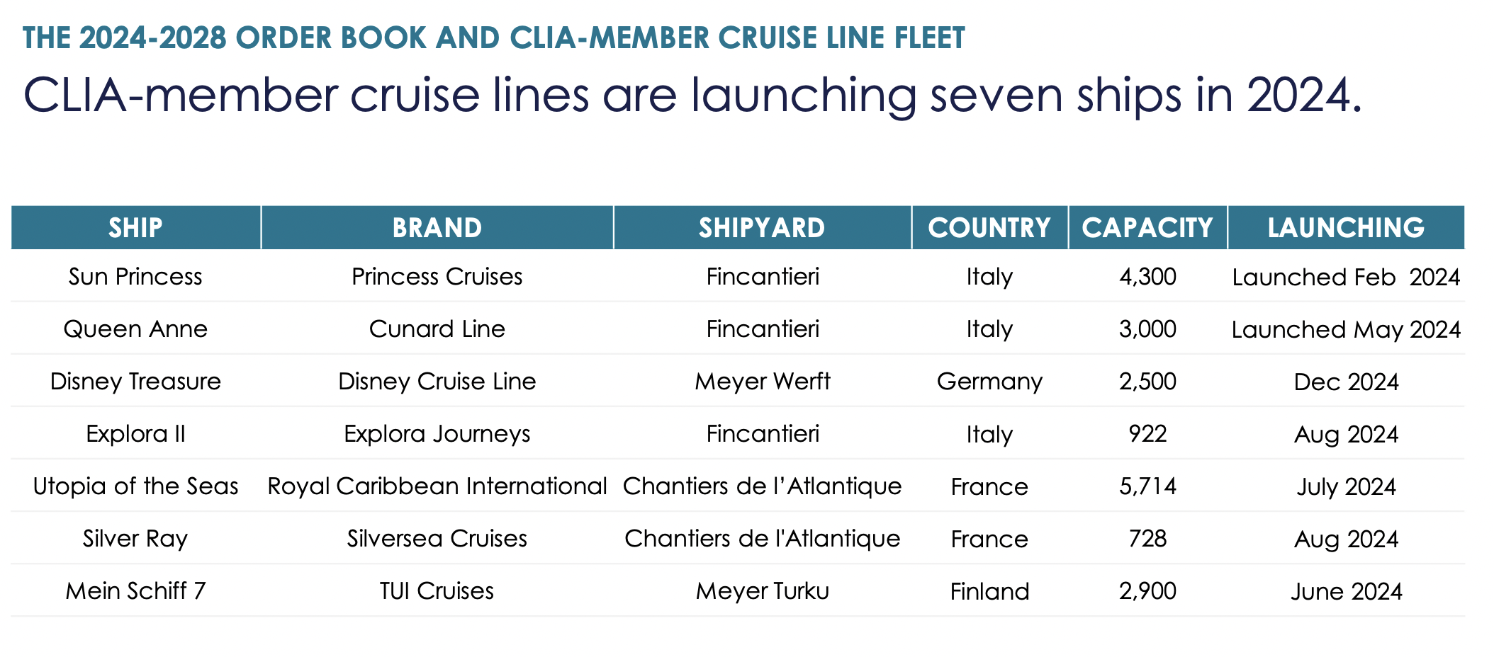 Cruise Lines International Association (CLIA) has released its 2024 State of the Cruise Industry report covering key cruise travel trends, 2019-2023 stats, 2024-2028 trends and orderbook and sustainability initiatives overview.