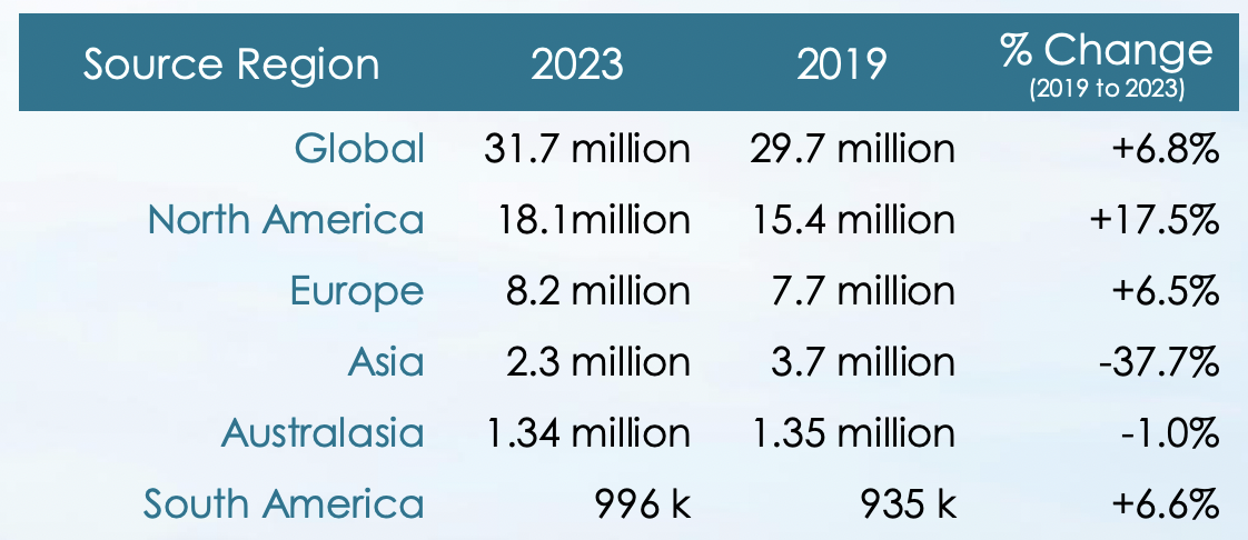 - Expedition and exploration are the fastest-growing sectors of cruise tourism, with a 71% increase in passengers traveling on expedition itineraries from 2019 to 2023.