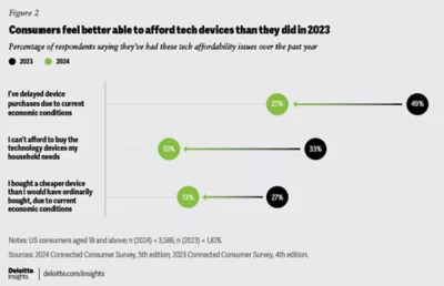 • More people are looking to cut back on device purchases (23% compared with 7% last year), indicating ongoing financial pressures in some US households.