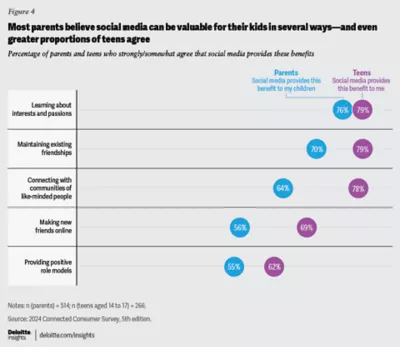 • Significant majorities of each group agree that social media helps kids learn about topics of interest, maintain friendships, and connect with like-minded communities.