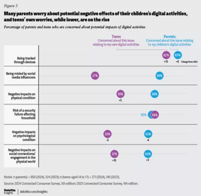 • 6 in 10 parents say they’re worried about their kids being misled by social media influencers, only about a quarter of teens share that concern.