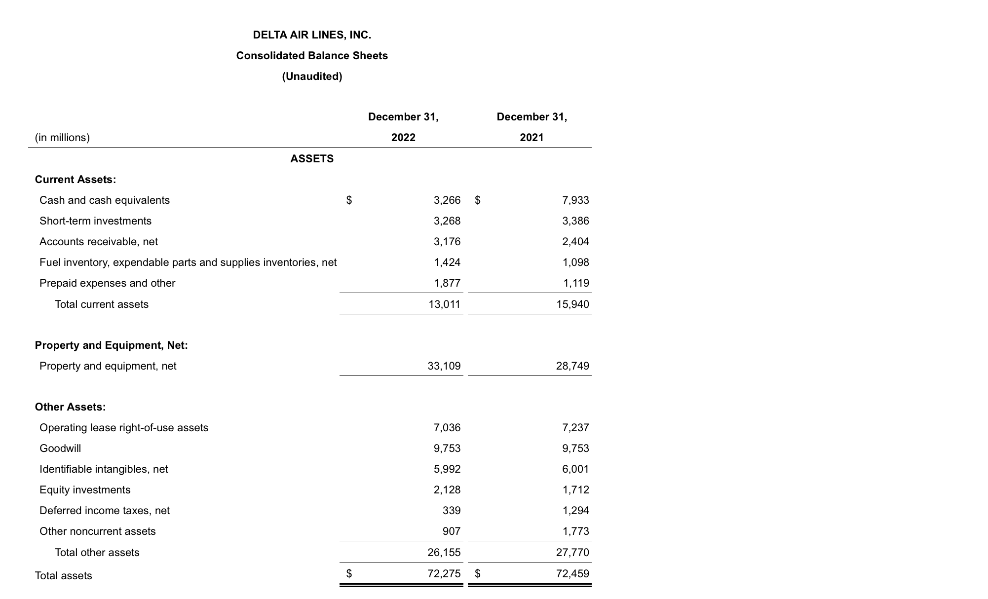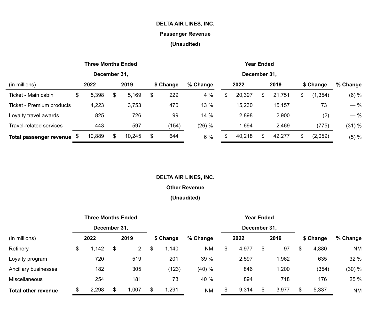 - Added a record 8.5 million new SkyMiles Members in 2022 and a record 1.2 million new Delta American Express cardholders