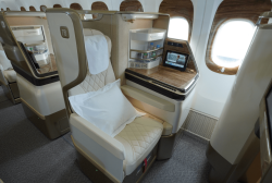 Customers flying in the new Emirates 777 Business Class can look forward to spacious seats, more privacy, with the luxury of uninterrupted sleep with a 180 degree fully reclined flat bed. With the middle seat removed, each 20.7-inch-wide soft leather seat offers aisle access for every customer, in addition to a personal mini-bar, wooden table for dining or working, multiple charging outlets for personal devices and new seat button controls.