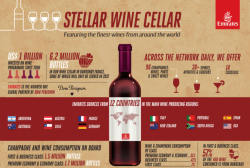Currently Emirates offers 36 different varieties of French wines and Champagnes onboard its aircraft.