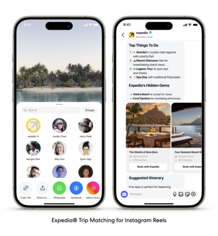 Through Expedia Trip Matching, launching in early June on Instagram, travelers can share any publicly available travel-related reel — whether from content creators they follow or trending reels — directly with Expedia and receive customized itineraries, destination ideas, and travel tips based on the reel. Powered by AI, this new experience transforms inspiration into real-world travel plans, making it easier than ever to book travel directly from Instagram. Expedia Trip Matching is now open for beta access by visiting Expedia.com/tripmatching.com.