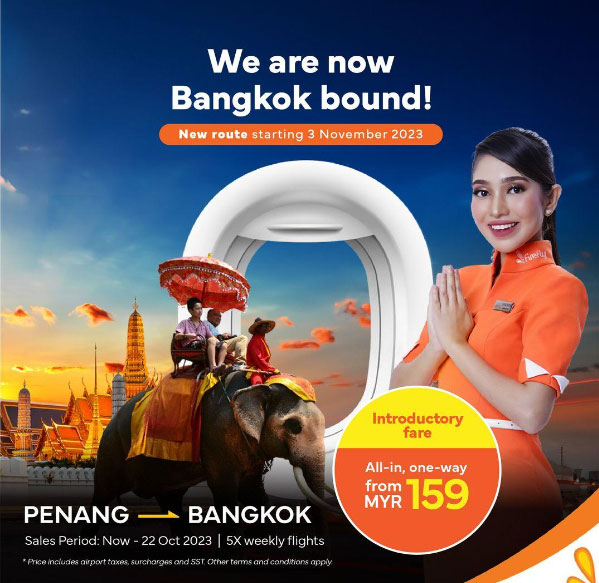 To inaugurate the Penang-Bangkok route, the airline is offering a promotional one-way fare starting at MYR159 or USD51 for the Bangkok-Penang sector. Sales for this introductory fare will remain open until October 22, and the travel period is from November 3, 2023, to March 30, 2024.