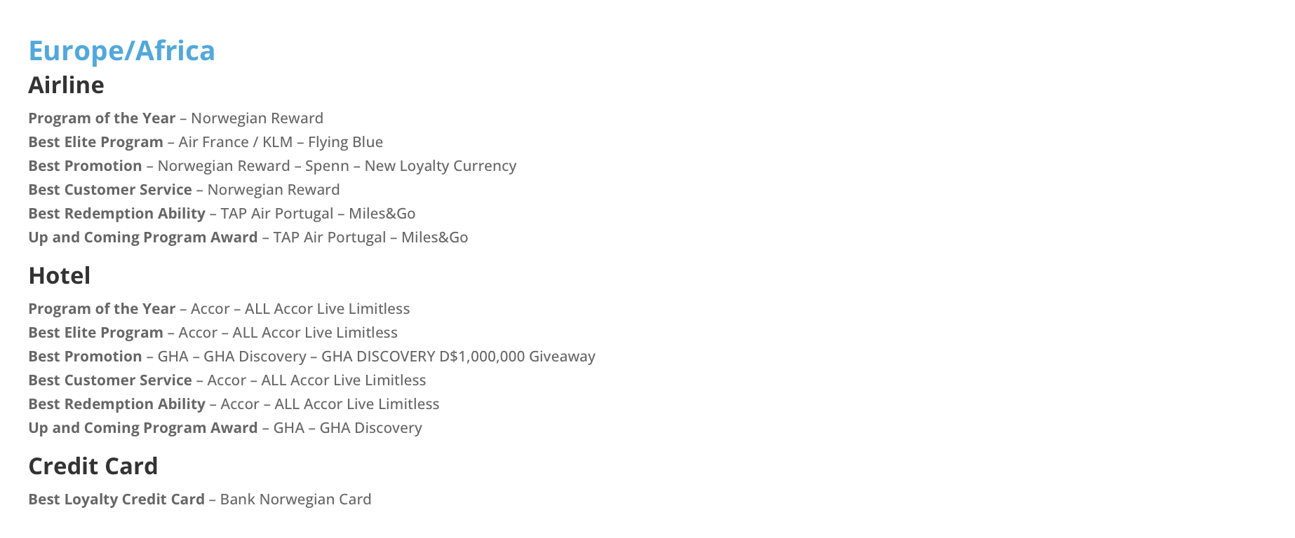 TAP’s Miles&Go program received dual recognition in the Europe/Africa region: