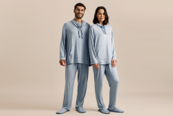 Emirates’ Business Class Loungewear is composed of a super soft premium modal material, which customers find lightweight and breathable. Designed to reflect contemporary athleisure trends, the cozy fabric is in a relaxing shade of light blue, available in two sizes. The botanic fibres and jersey knit style means the loungewear has an elegant drape that flatters various body types, ensuring soft and stretchy comfort above the clouds. Presented in a complementary drawstring pouch, each set contains an adjustable loungewear top and pants, a pair of warm slippers and an eye mask.