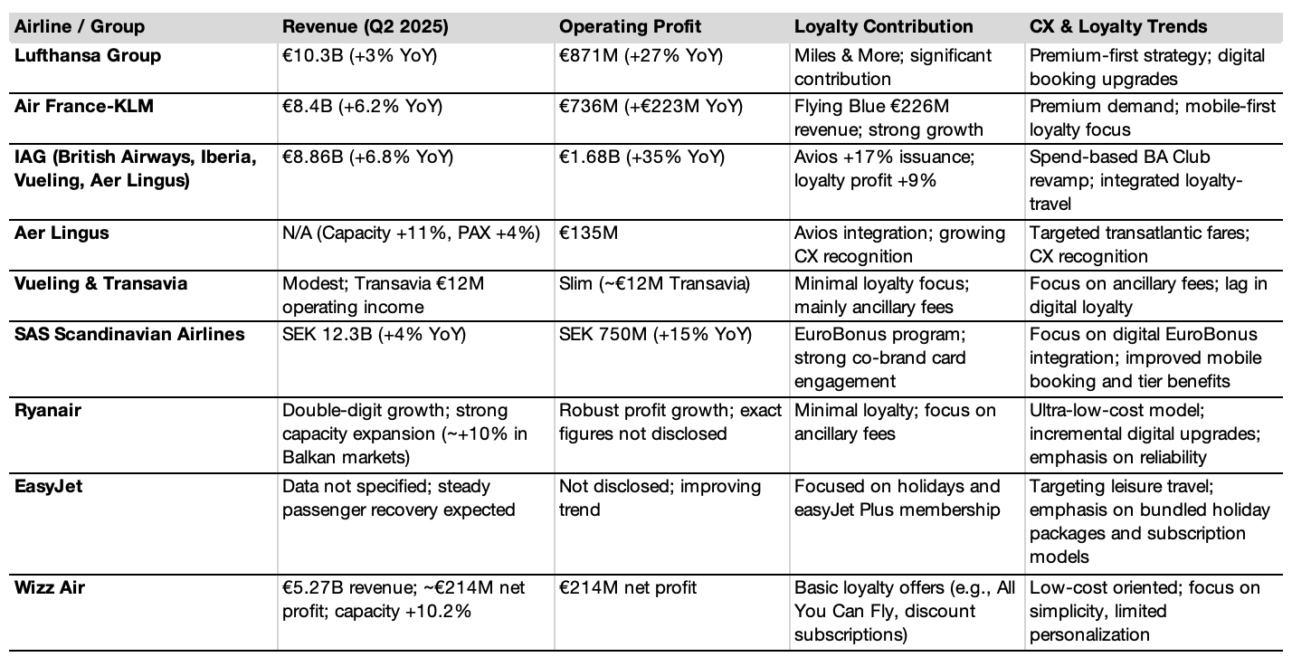 European flag carriers are capitalizing on loyalty and premium demand to power Q2 2025 profits. Loyalty programs have evolved into strategic revenue engines, while low-cost carriers still rely on volume and ancillary income. Brands investing in digital loyalty integration, personalized CX, and premium product bundles are best positioned to sustain margins and drive engagement in a competitive market.