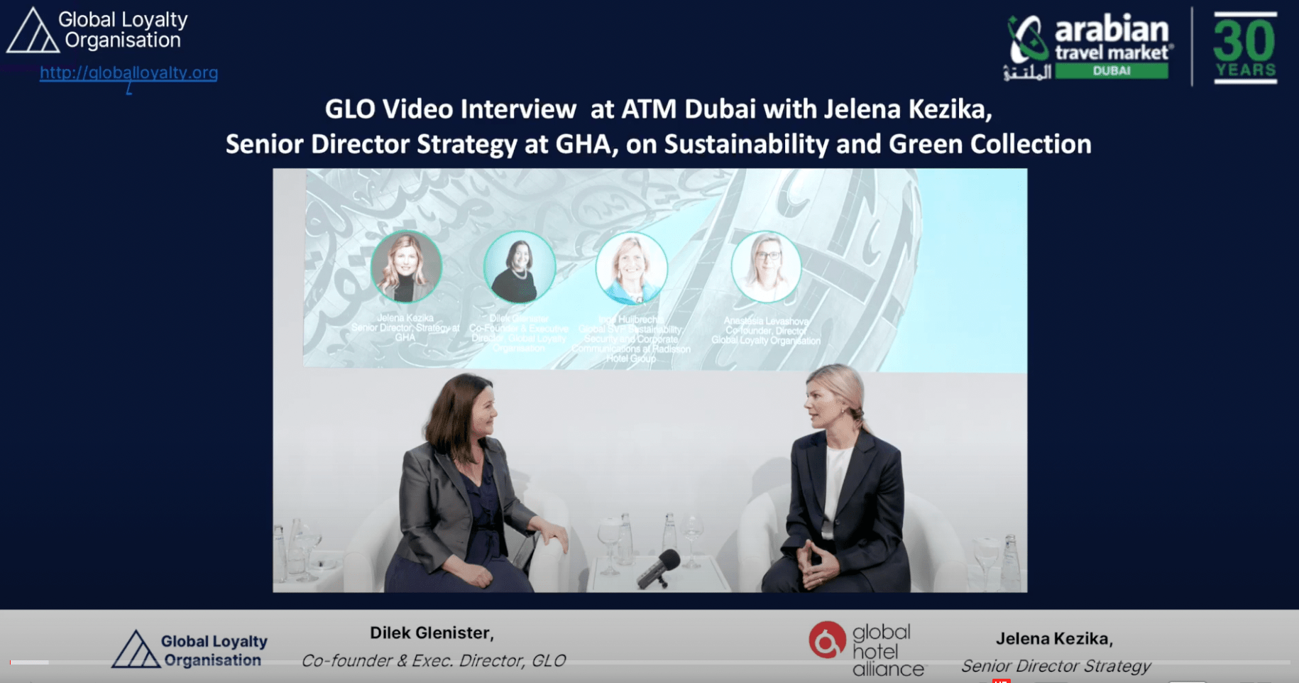 GLO Video Interview at ATM 2023 with Jelena Kezika, Senior Director Strategy , Global Hotel Alliance 1:55: On challenges companies face in their sustainability Journey 5:03: On changing customer demands 8:00: GHA's sustainability efforts and Green Collection 12:39: On Donate Discovery Dollars Dilek Glenister, GLO: Good afternoon from ATM…