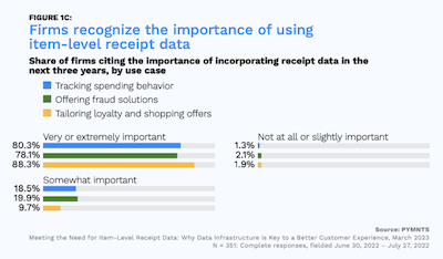 Making it Personal: How Item-Level Data Drives Customer Loyalty The 2023 report “Meeting the Need for Item-Level Receipt Data: Next Steps in Receipt Data Adoption”, produced by PYMNTS in collaboration with Banyan, demonstrated that 88% of firms believe the most important impact data can have is on personalisation – specifically tailored offers and rewards. |