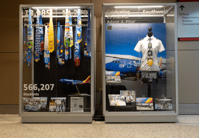Southwest Showcases 25 Years of Adopt-A-Pilot with Display at Dallas This year marks the 25th anniversary of Adopt-A-Pilot®, a signature Southwest Airlines® program that has inspired more than half a million fifth graders through science, technology, engineering, and mathematics (STEM)-centered activities, connecting Southwest® Pilots with classrooms to engage students in aviation-related lessons. |