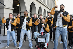 Surprise a cappella performance featuring Devine, George Kittle, Bijan Robinson and Jordan Mailata at San Francisco’s Ferry Building crowned the winner of the Marriott Bonvoy Super Bowl Sleepover Suite.