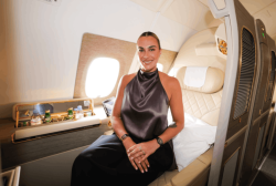 Emirates serves up a winning partnership with world no. 1 tennis player Aryna Sabalenka Sabalenka reveals first tennis inspired Grand Slam tennis livery on A380. (Image: Emirates)