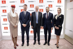 Emirates and Condor sign codeshare agreement The new agreement will offer seamless connections and expanded choices for Emirates customers connecting on Condor-operated flights via Germany to popular destinations in Majorca and the Canary Islands as well as international points in North, Central and South America and the Caribbean.