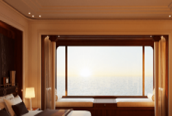 Orient Express Corinthian unveils its design and interiors in all their splendour A sleekly lined jewel of technology designed by Chantiers de l’Atlantique, Orient Express Corinthian will be the world’s largest sailing yacht. Spanning an impressive 220 m and sporting 4,500 m² of sails mounted on three inclinable masts, the ship will be able to reach a speed of 17 knots propelled solely by the wind.