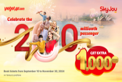 WELCOME 200 MILLION PASSENGERS, GET EXTRA 1,000 SKYPOINTS From September 10 to November 30, 2024, customers who book flight tickets and enter their SkyJoy ID will receive extra 1,000 SkyPoints from the Vietjet SkyJoy frequent flyer program (*). This offer applies to customers who purchase tickets through all Vietjet ticket channels. Customers can use the SkyPoint during subsequent ticket purchases.