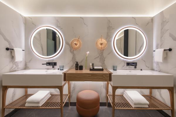 Andaz Doha features 56 spacious residences including 34 one-bedroom residences, 12 two-bedroom residences and 10 three-bedroom residences; offering all the comforts of home in a stylish and luxurious space. Designed in tasteful hues of cream, amber and gold range in size from 100 square meters to 300 square meters and feature walk-in wardrobe spaces. The elegant residences are complete with dedicated parking spaces and resident-only elevators, designed to provide privacy and accessibility. Residents have access to the hotel’s amenities including the gym, pool and spa with personalized hotel benefits available to long-term guests.