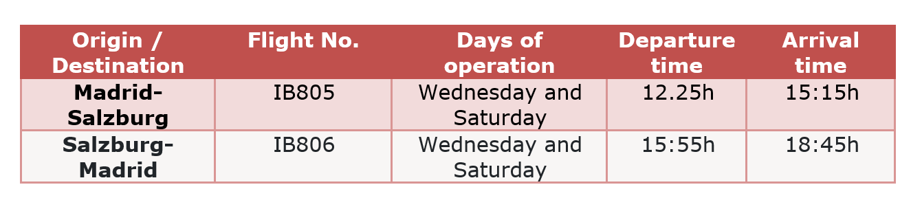 For those planning to travel to this Austrian city, Iberia offers direct flights to Salzburg with two weekly frequencies, on Wednesdays and Saturdays, until 29 March. There will be 13,320 seats connecting both cities during these four months.