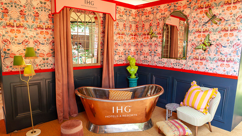Drawing inspiration from IHG hotels around the world, festival goers could enjoy their favourite hotel moments with a festival twist. This included a stunning hotel lobby and concierge, a full-service cocktail bar tended by trained mixologists, a floral al-fresco bedroom with room-service telephones and a picture-perfect outside bathroom with an oversized tub.