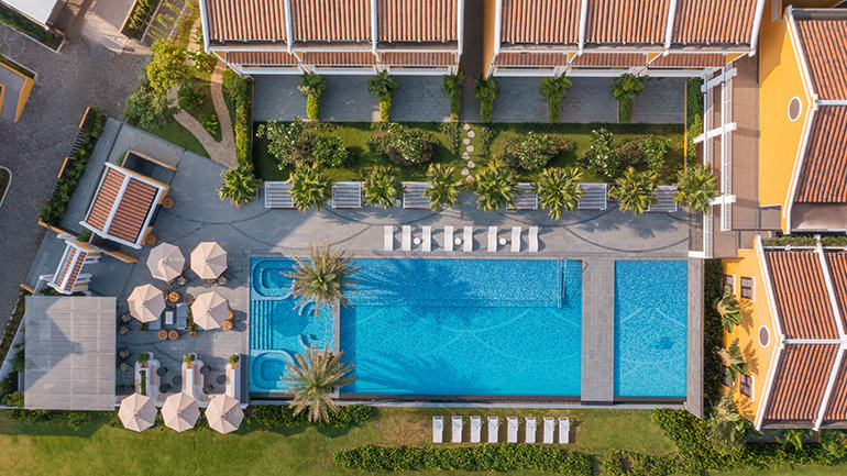 The resort boasts three restaurants and bar including The Yellow Bicycle, a modern Vietnamese deli, and Ember & Sip, a spin on the concept of American backyard barbeque with Asian flavours. Breathe Spa blends the wisdom of Eastern traditions with the innovation of Western therapies, with signature treatments including rejuvenating reflexology, enhanced with aromatic oils and herbs. The hotel’s infinity-edge swimming pool overlooks the Hoai River, providing the perfect serene spot to observe the passing boats.