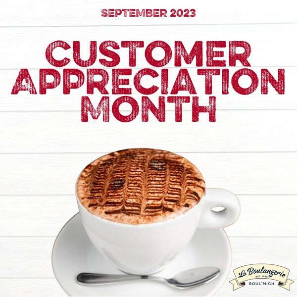 Throughout the month of September, La Boulangerie Boul'Mich is celebrating its guests by planning a series of promotions and offers as a token of gratitude for the unwavering support, and a special gift on National Coffee Day, Sept. 29.