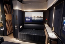 The separate suites set new standards in comfort with ceiling-high walls and a lockable door, a large table and a wide seat, a giant TV screen and wireless over-ear headphones.