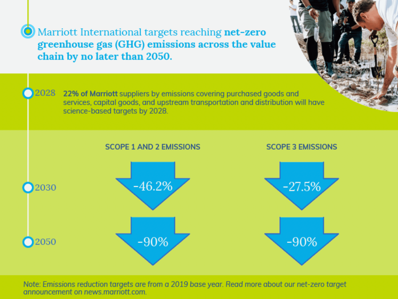 - Sharing sustainability information, including individual hotel carbon footprint data, on Marriott.com.