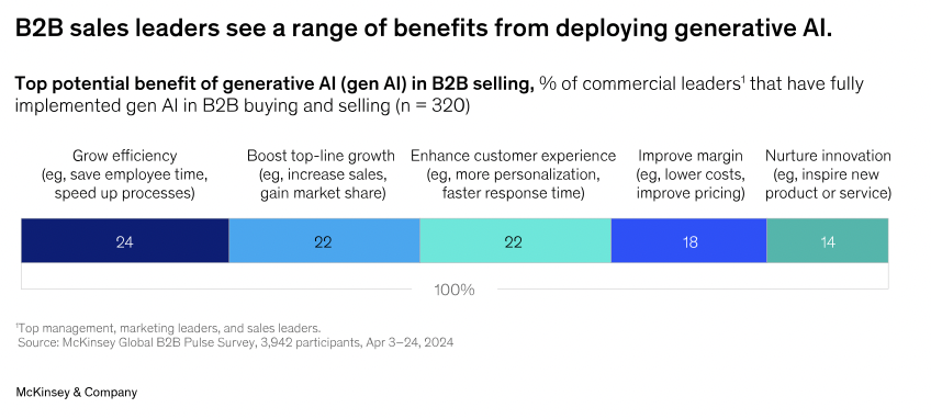McKinsey & Company.McKinsey & Co has publsihed a survey into potentail pathways to use AI in B2B sales. Read in full here.