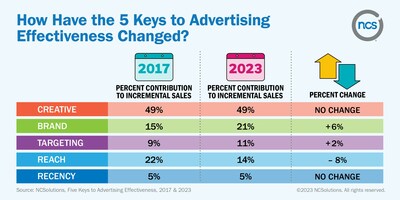 The findings are the result of an update to NCSolutions’ (NCS) 2017 groundbreaking study, “The Five Keys to Advertising Effectiveness.” The update specifically looked at the primary drivers of incremental sales for advertising and select media comparisons. NCS is a leading company for improving advertising effectiveness for the consumer packaged goods (CPG) ecosystem.