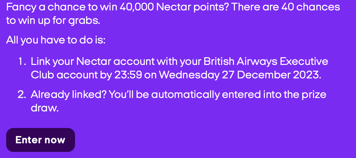 Nectar and British Airways launched Christmas campaign inviting its loyalty members to link their accounts and participate in the prize draw.