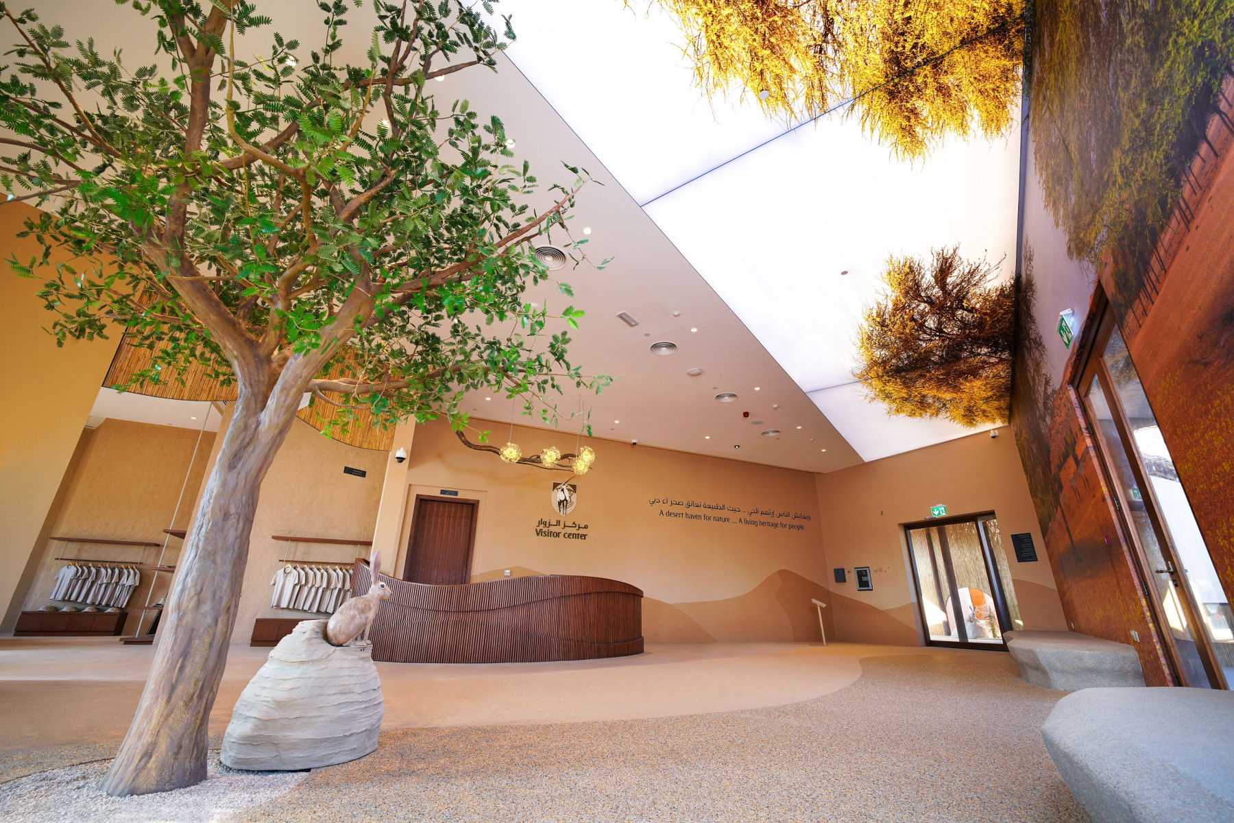 - The reception hall is an inviting open space that welcomes visitors into the centre, where a massive wall and stretch ceiling photography highlights the Arabian Oryx in their natural habitat. An interactive kiosk enables visitors to explore a map of the Reserve and discover where elusive wildlife like the Arabian Fox have been spotted.