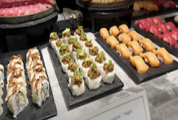 The sushi station features 45 new recipes created by Oceania Cruises’ Executive Culinary Directors, Chefs Alex Quaretti and Eric Barale, and their team. These include two types of sashimi per day, two types of uramaki, three kinds of nigiri and a daily vegetarian option.