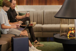 Innovative features that elevate the guest experience include the lobby which mimics majestic redwood trees with dappled lighting through the leaves, guiding guests towards a cabin-inspired bar and open dining area. The warm and inviting space offers a mix of private and social seating arrangements, while a glazed concourse viewing area evokes the iconic San Francisco fog.