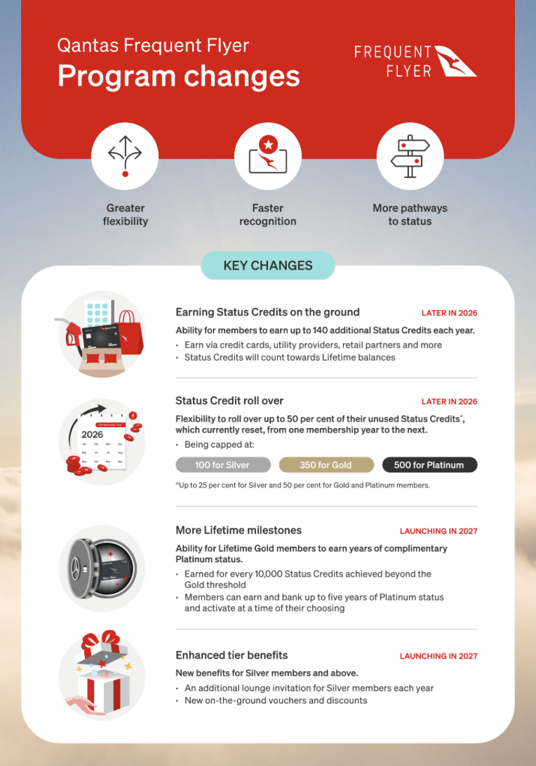 For the first time since the loyalty program launched in 1987, members will be able to roll over unused Status Credits and earn Status Credits through everyday spending—two features long requested by frequent flyers. The enhancements will be phased in from later this year following consultation with thousands of members and loyalty industry specialists.