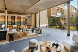 The contrasting artwork sets the stage for the hotel’s blend of history, artistry, playfulness and emotional hospitality. The hotel’s biophilic design, evident in the usage of wood and natural materials, along with meandering paths through inner Japanese gardens, further connects guests with nature.
