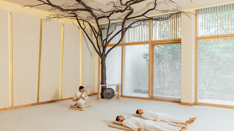 Through a range of brain entrainment techniques, Sound Healing downshifts the normal beta or alert state to alpha or relaxed consciousness, theta or meditative, and eventually delta waves, inducing a deep state of relaxation and healing. The parasympathetic nervous system activates, calming the sympathetic nervous system, which is responsible for the “fight-or-flight” response. Six Senses, now part of IHG Hotel and Resorts’ Luxury & Lifestyle portfolio, incorporates Sound Healing into a variety of wellness therapies, retreats, and experiences, also making space for silence and the healing power of stillness.