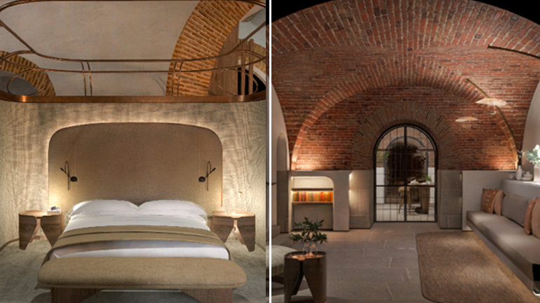 Madrid-based architects Arvo Arquitectura have been using their extensive experience in hospitality and heritage buildings to weave this inspiration into the project, in collaboration with interior designer and “natural future” advocate Raphaël Navot, the recipient of the Maison&Objet Designer of the Year Award 2023. Many of the original wine and olive oil vessels have found a new life as sculptures and lighting fixtures.