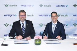The agreement was signed by Arved von zur Muehlen, Chief Commercial Officer at Saudia, and John Weatherill, Executive Vice-President and Chief Commercial Officer at WestJet.