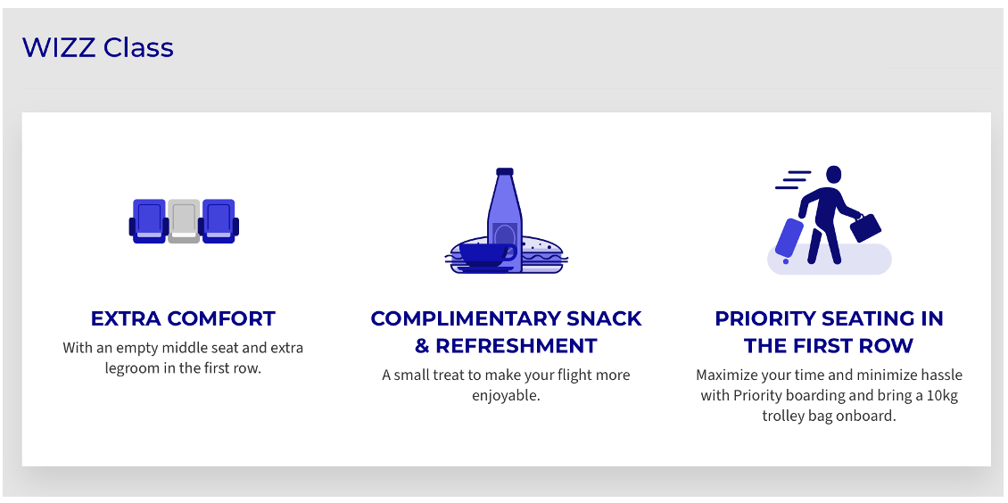 For travellers on short business trips or frequent leisure journeys, Wizz Class delivers: